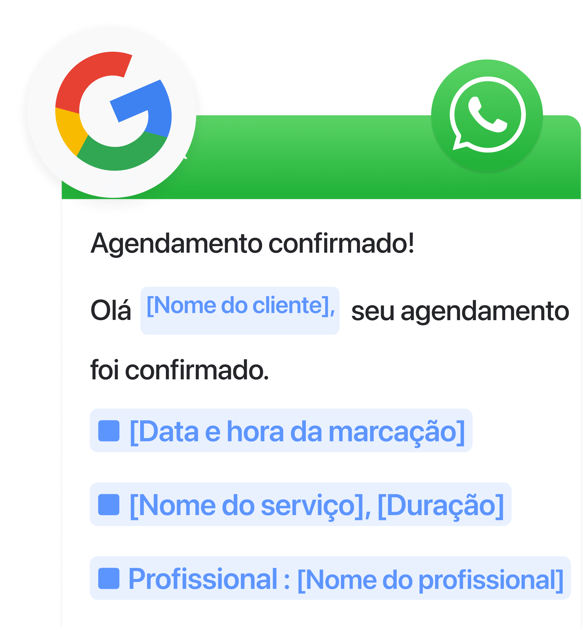 Assim que fizerem uma reserva pelo Google, eles receberão uma confirmação imediatamente via WhatsApp.