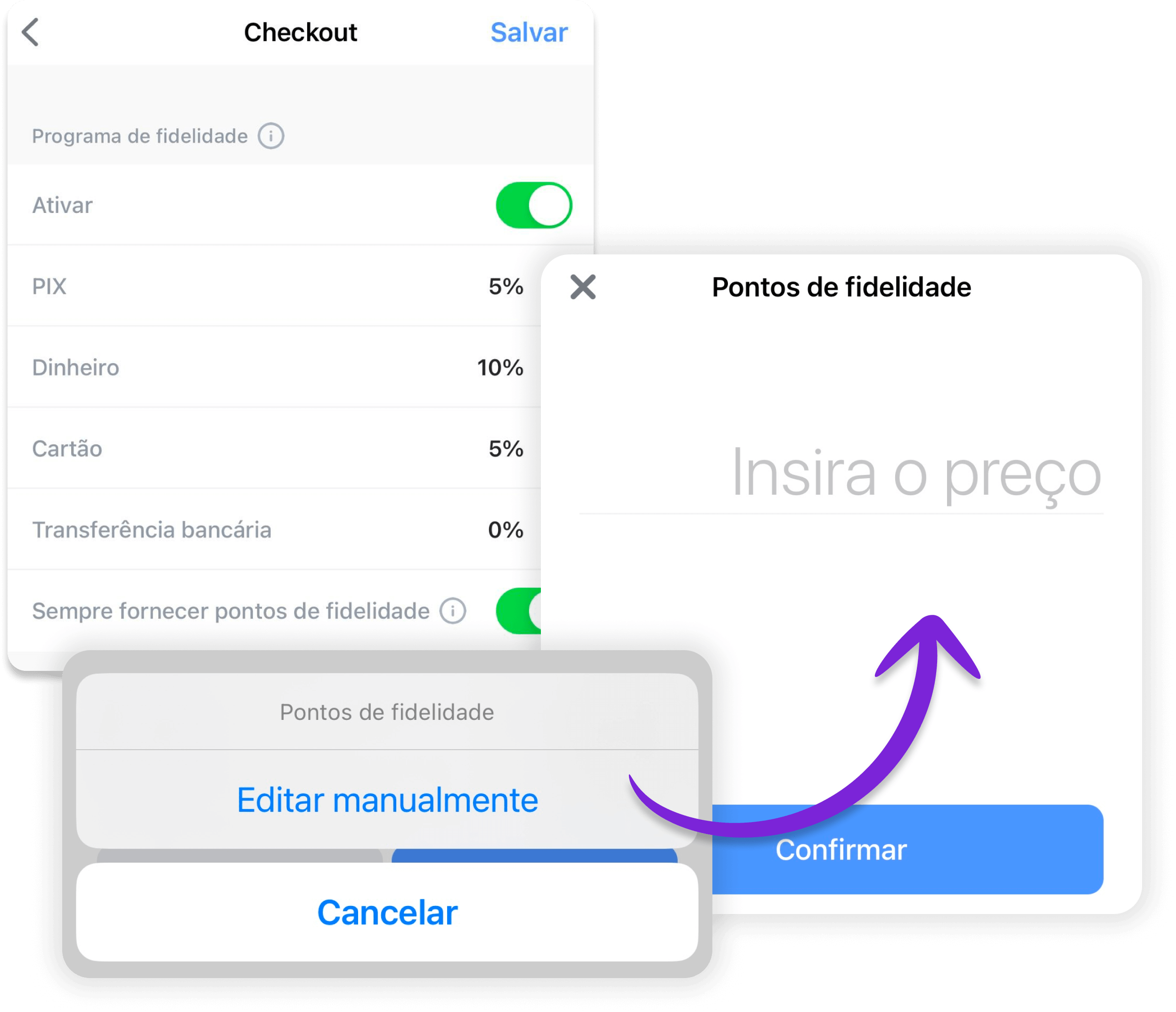 Escolha se deseja ou não oferecer pontos de fidelidade no momento do pagamento. Defina a porcentagem do valor do serviço que será convertida em pontos baseada no método de pagamento. Faça seu programa de fidelidade trabalhar a favor do seu negócio.