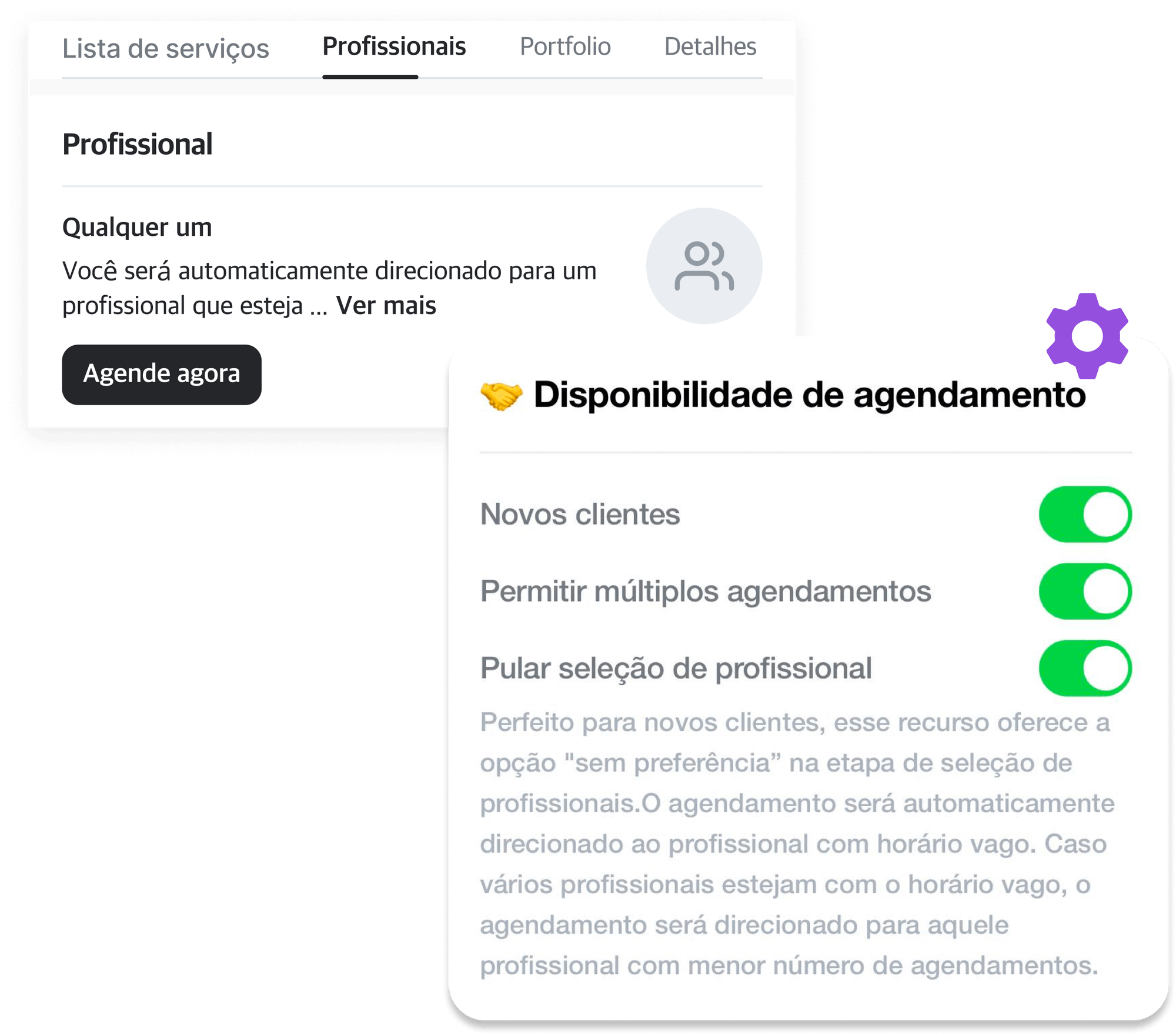 E também para clientes que ainda estão explorando suas opções, a lista de profissionais inclui uma opção "Qualquer um", assim os clientes podem reservar com qualquer um do salão.