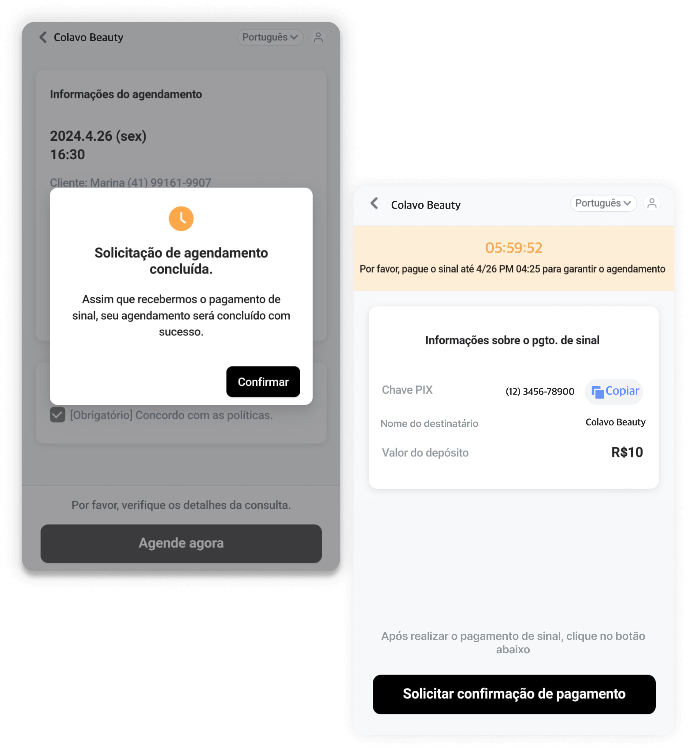 Para garantir que o cliente não falte, peça pagamento de sinal por Pix! Assim os clientes podem garantir seus horários e você tem a segurança de que o cliente virá.
