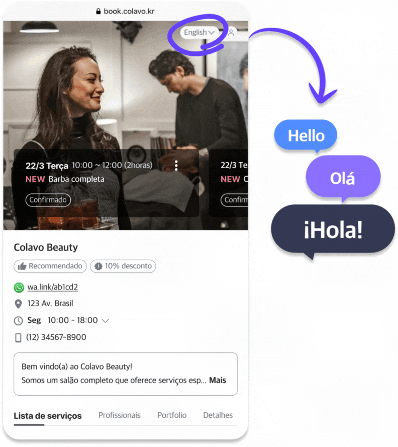 Onde os clientes podem conhecer todos os detalhes sobre o seu negócio - desde os serviços oferecidos com seus preços, fotos e descrições detalhadas, até se familiarizar com os profissionais e seus trabalhos.