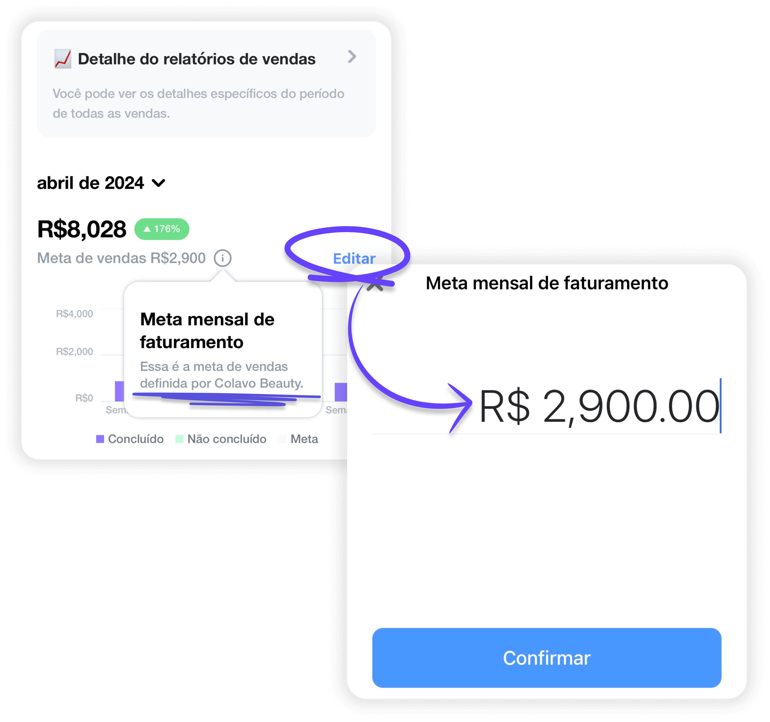 Empodere sua equipe definindo metas pessoais que se alinham com os objetivos de vendas mensais do salão, cultivando trabalho em equipe e sucesso de todos. O relatório de progresso semanal permite que os profissionais monitorem suas conquistas enquanto os mantém informados sobre seus próximos objetivos de vendas.