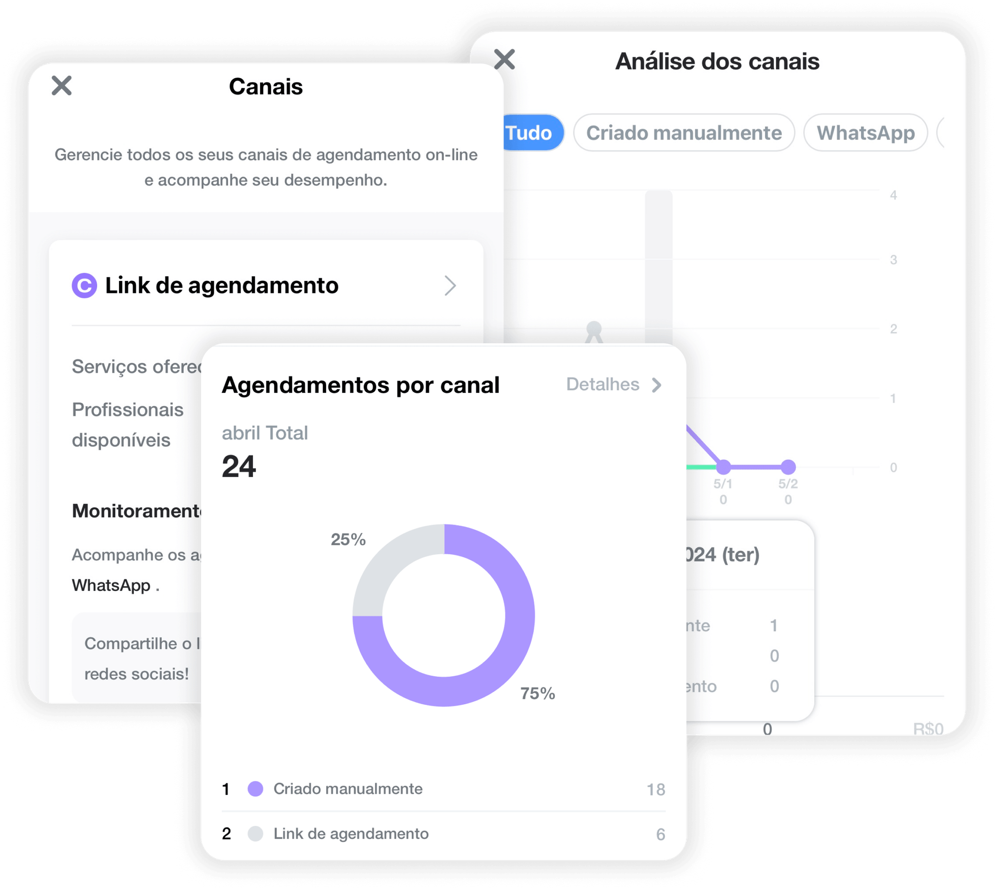 Tenha um painel detalhado, fácil de usar e em tempo real com visão completa sobre vendas e receita. Te ajudamos a gerenciar as finanças do seu salão de forma eficiente.