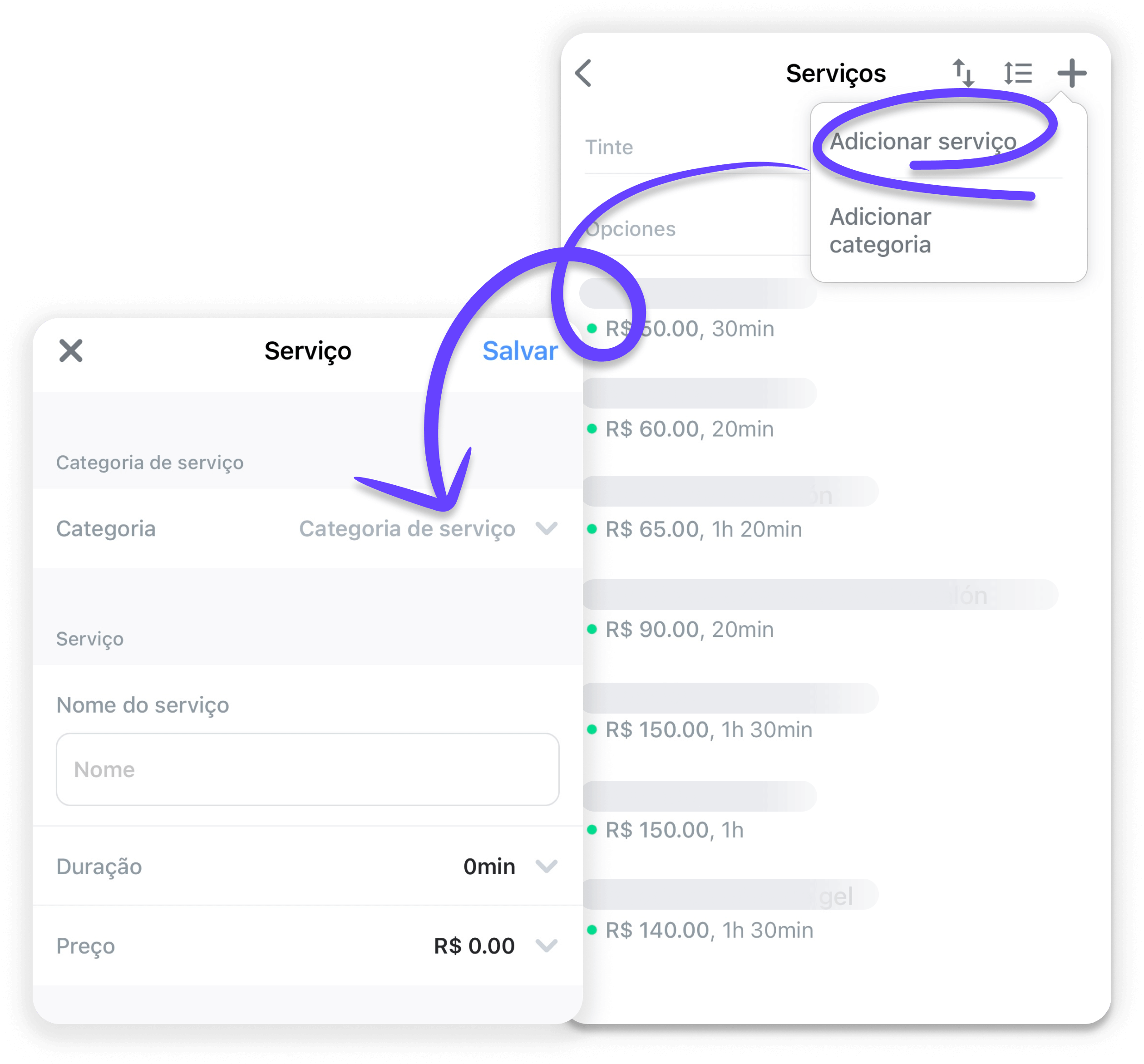 Seja nomeando a categoria do serviço, determinando a duração ou definindo o preço - você está no controle. Além disso, você pode adicionar fotos e descrições detalhadas para mostrar aos seus clientes cada serviço.
